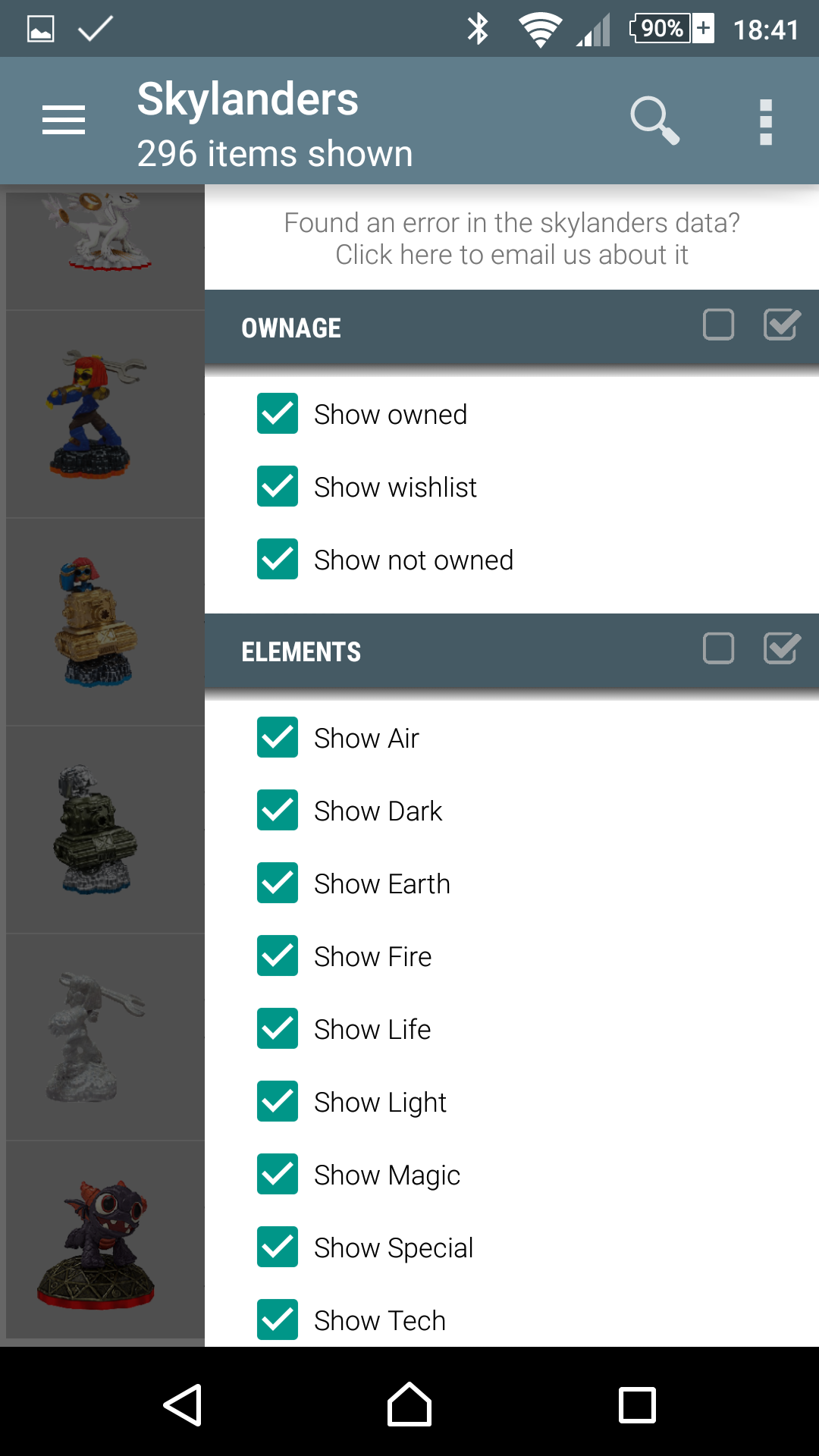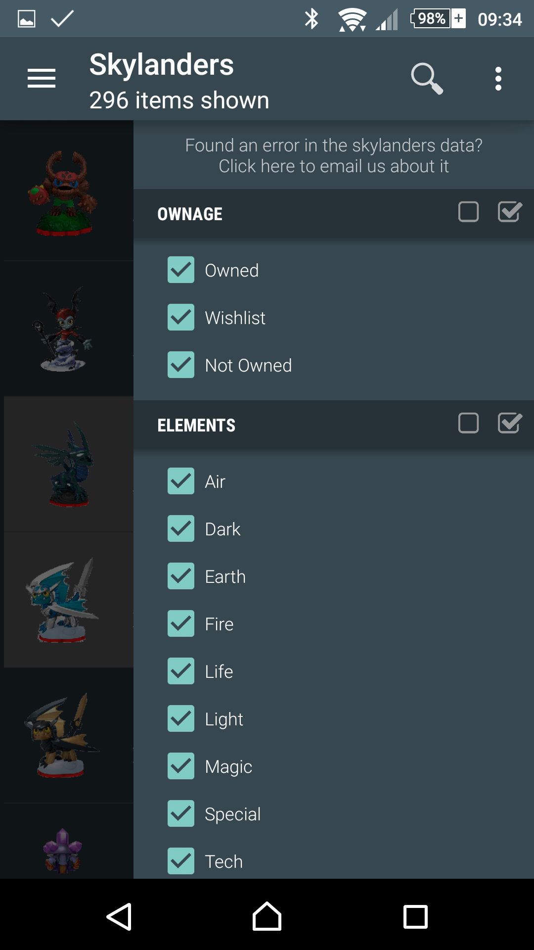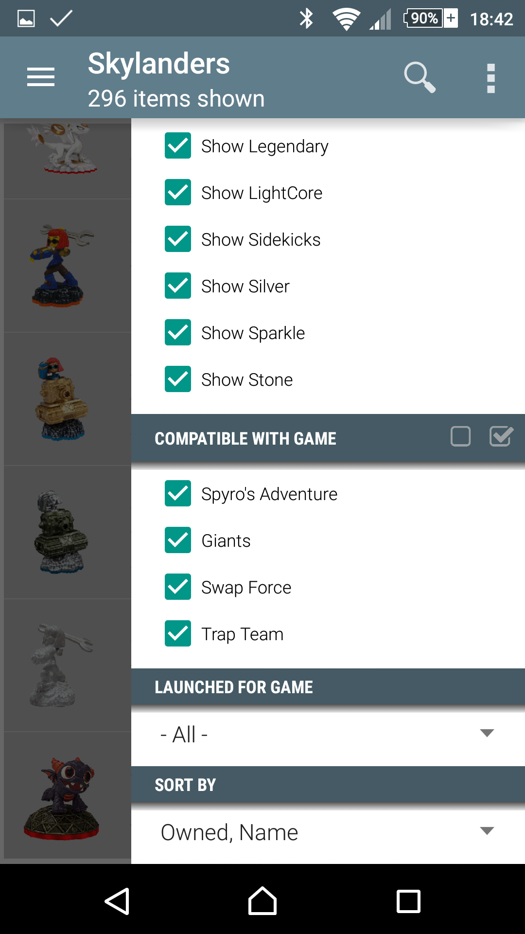 My Game Collection allows you to filter the Skylanders list, search it and sort it by a number of means.